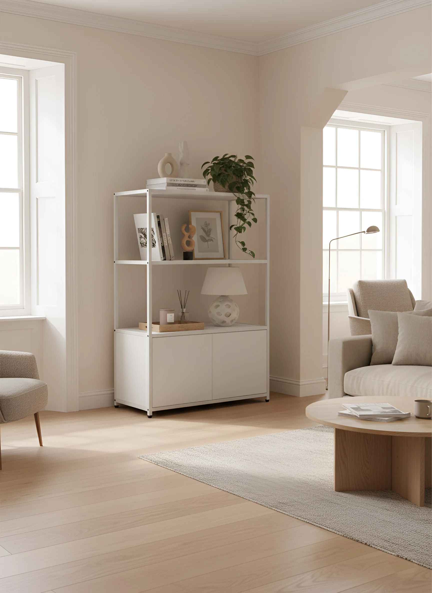 Create your own personalised cabinet space. The Muscoates Modular Cabinet gives you the perfect platform to bring your own personality into your home, all without sacrificing storage. Two rectangular open shelves, each measuring 38cm by 78cm, provide plenty of space to store and display your most treasured possessions and memories. Plus, you can use the top surface of the Muscoates as a third shelf that's ideal for larger feature items.