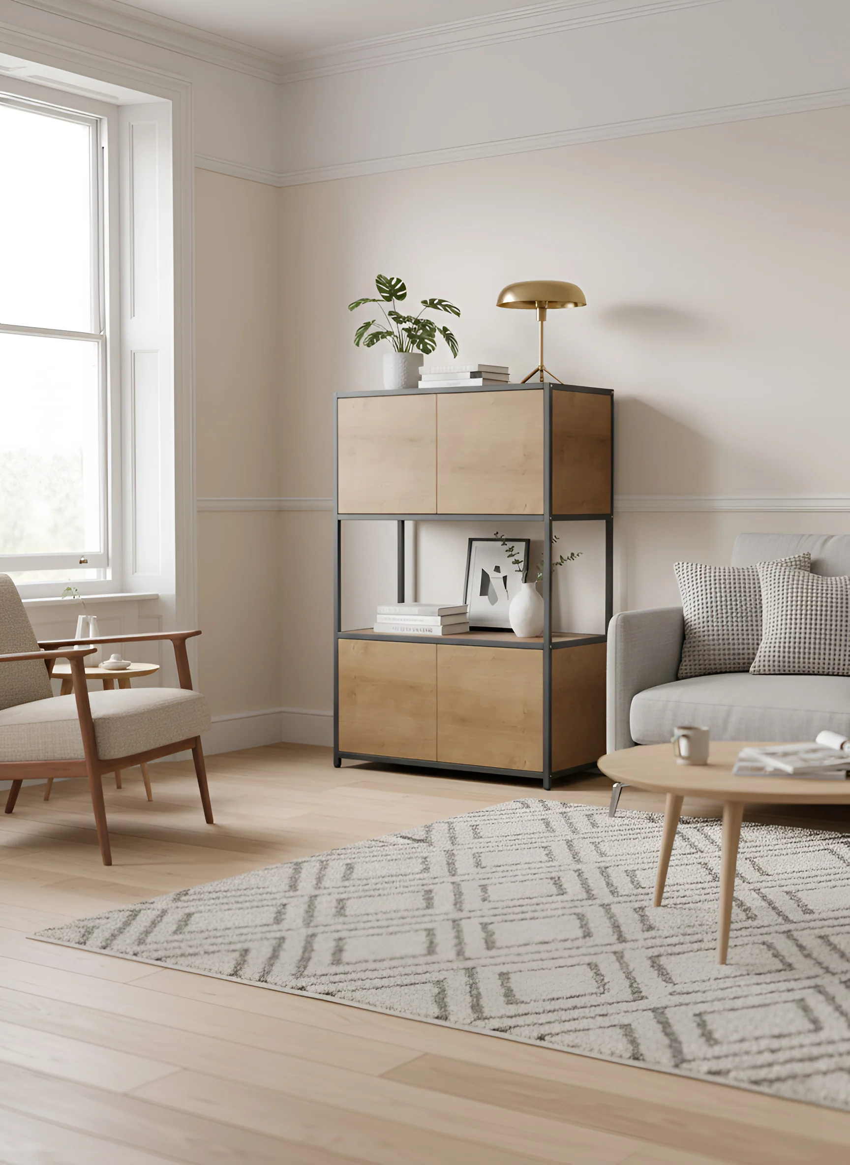 Sleek, minimal, and entirely customisable. The Crayke Modular Cabinet is the perfect way to tell your story. Comprised of two spacious double cupboards both above and below a single open rectangular shelf, the Crayke gives you plenty of storage space as well as the ideal frame for your favourite photos, ornaments and more.