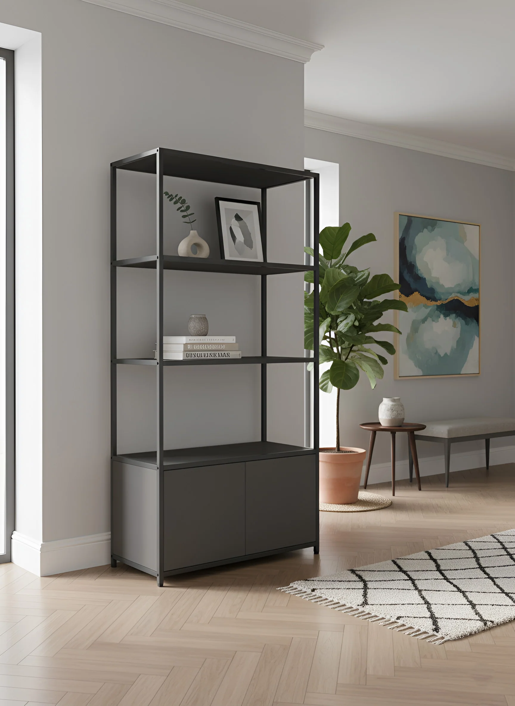 A minimal design for maximum effect - meet the Riseborough Modular Cabinet. This modern cabinet and shelving hybrid is the perfect way to organise your space. With three rectangular fixed shelves combined with the top of the unit which can be used as an open shelf itself, you have the perfect canvas to display your most loved possessions. Whatever the style and décor of your space may be, the Riseborough's versatile design means it's easy to make it your own.