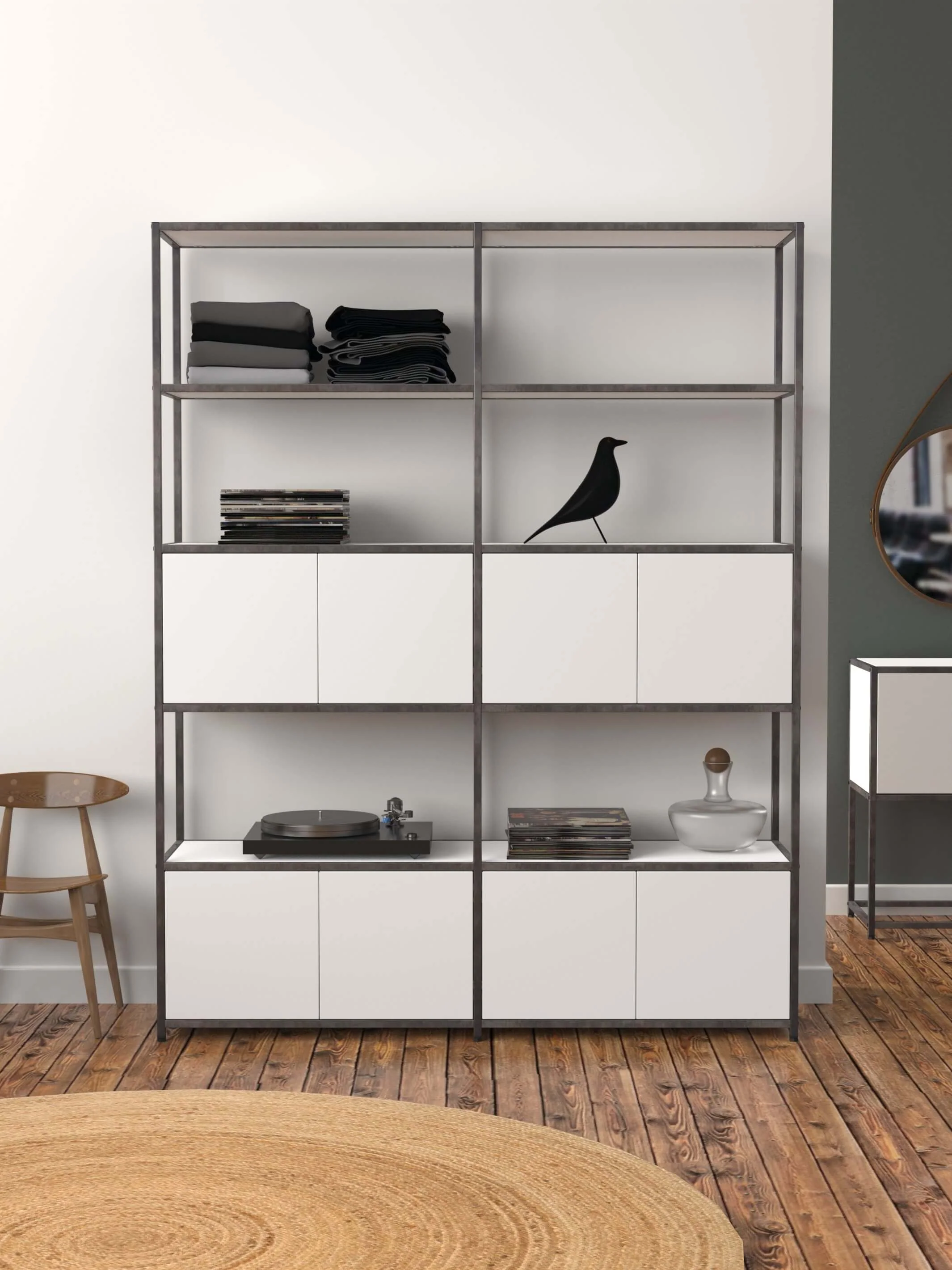 As one of our larger modular cabinet configurations, the Salton gives you an exceptional amount of storage space. Six rectangular open shelves combined with four spacious double cupboards mean you can safely store a large quantity of items and keep clutter under complete control. This, along with its distinctive appearance, makes the Salton an excellent candidate for creating a compact feature unit in any room of the house.