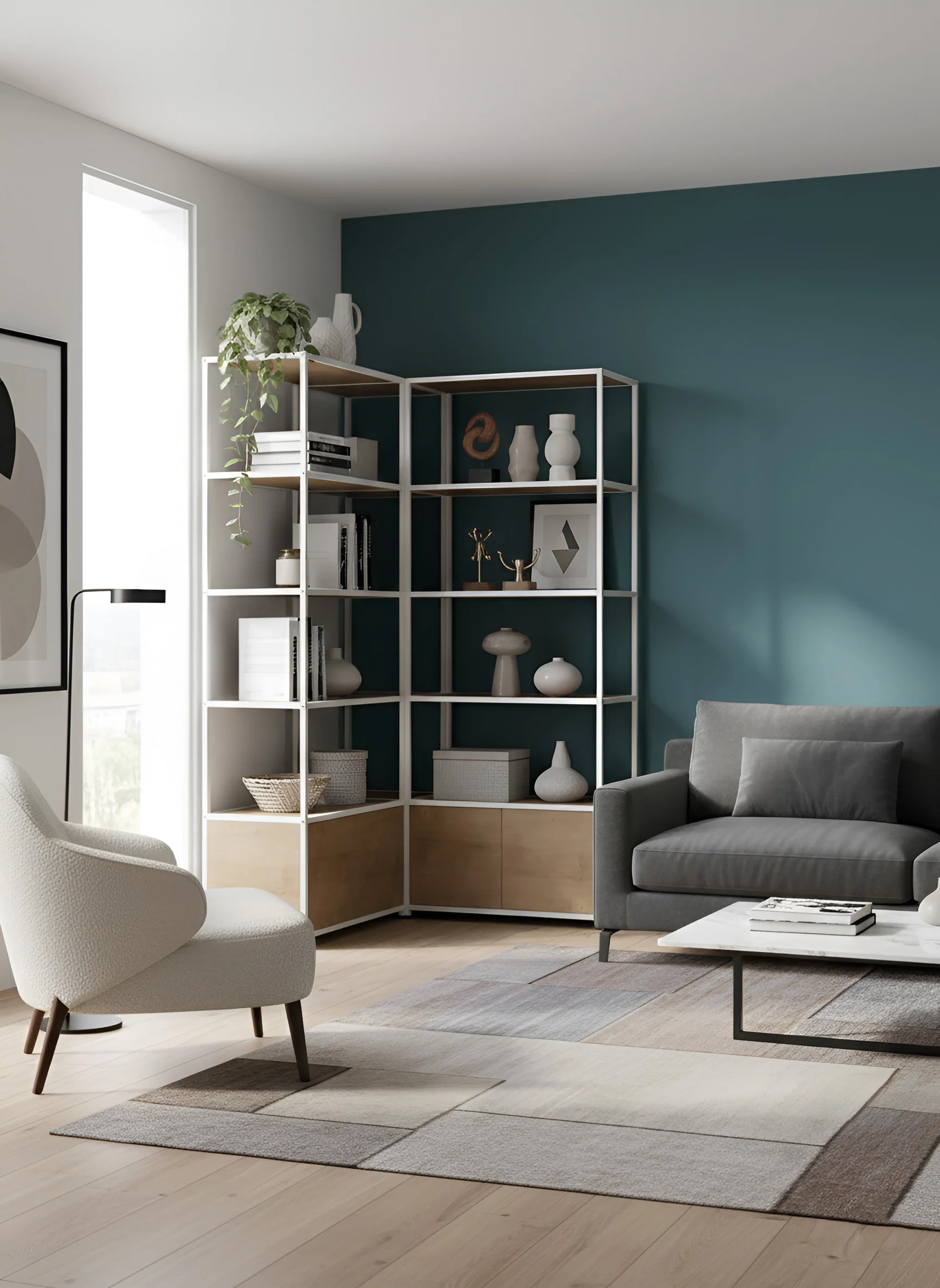 Transform a small corner of your home with the Hovingham Modular Corner Shelving Unit. Designed to fit into any corner space, the Hovingham combines functionality with modern style, featuring a thoughtful mix of open shelving and concealed storage.