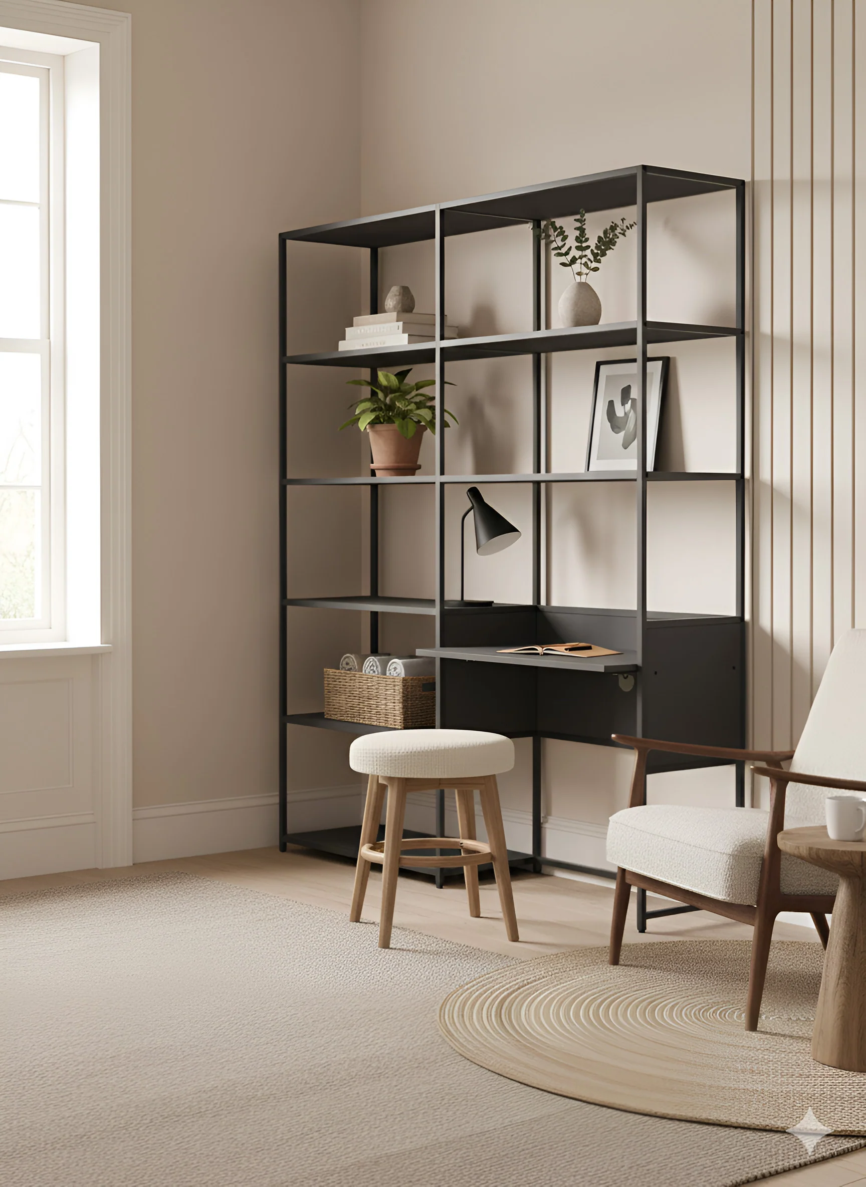The Saltergate is built around our proprietary modular metal framework that enables you to change and grow your workspace and shelving as your needs evolve. Add modules, change the configuration, or purchase additional parts and split it into separate units. You have the freedom to create the furniture you want that seamlessly fits around your life and your home.
