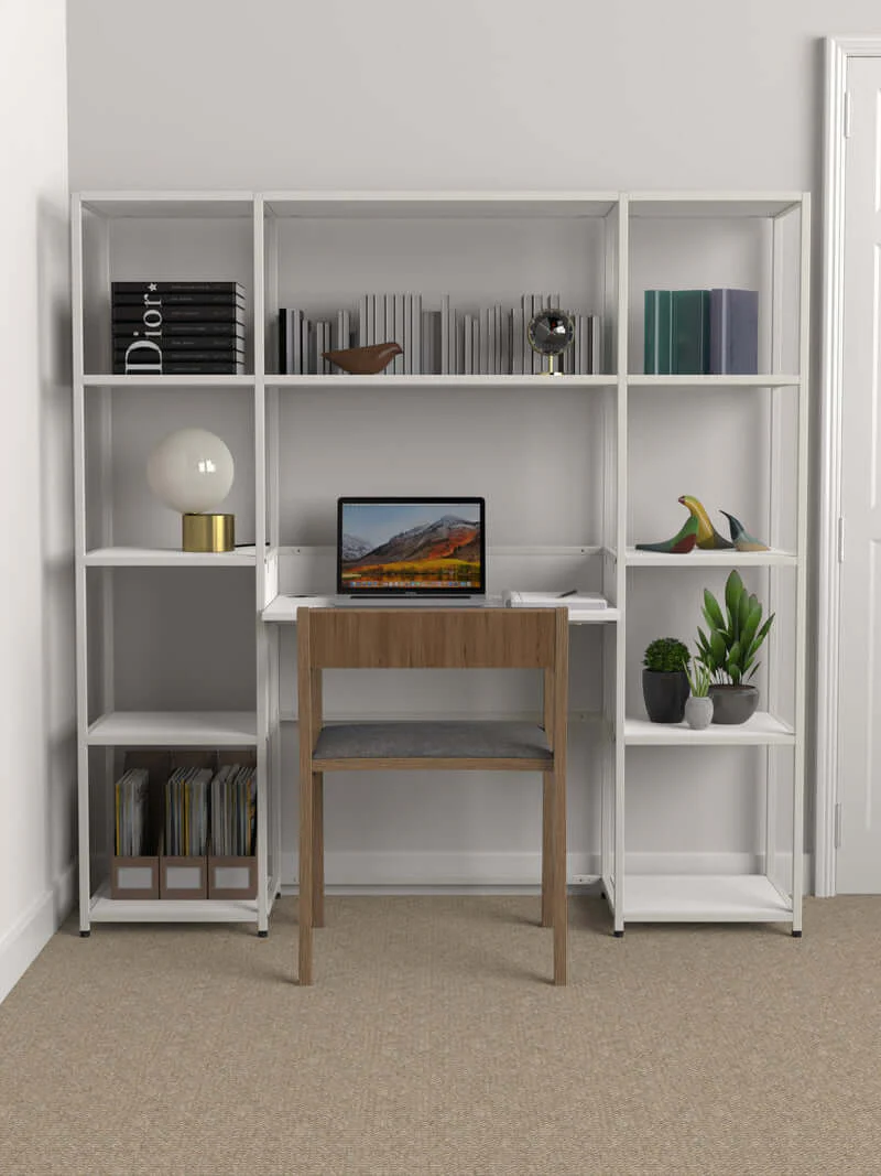 Surround yourself with beautiful things and stay inspired in your workspace with the Urra Modular Desk with shelving. Featuring nine shelves that cocoon the desk area, the Urra keeps everything within reach and ensures your home working space will keep you calm and focused on the task at hand.