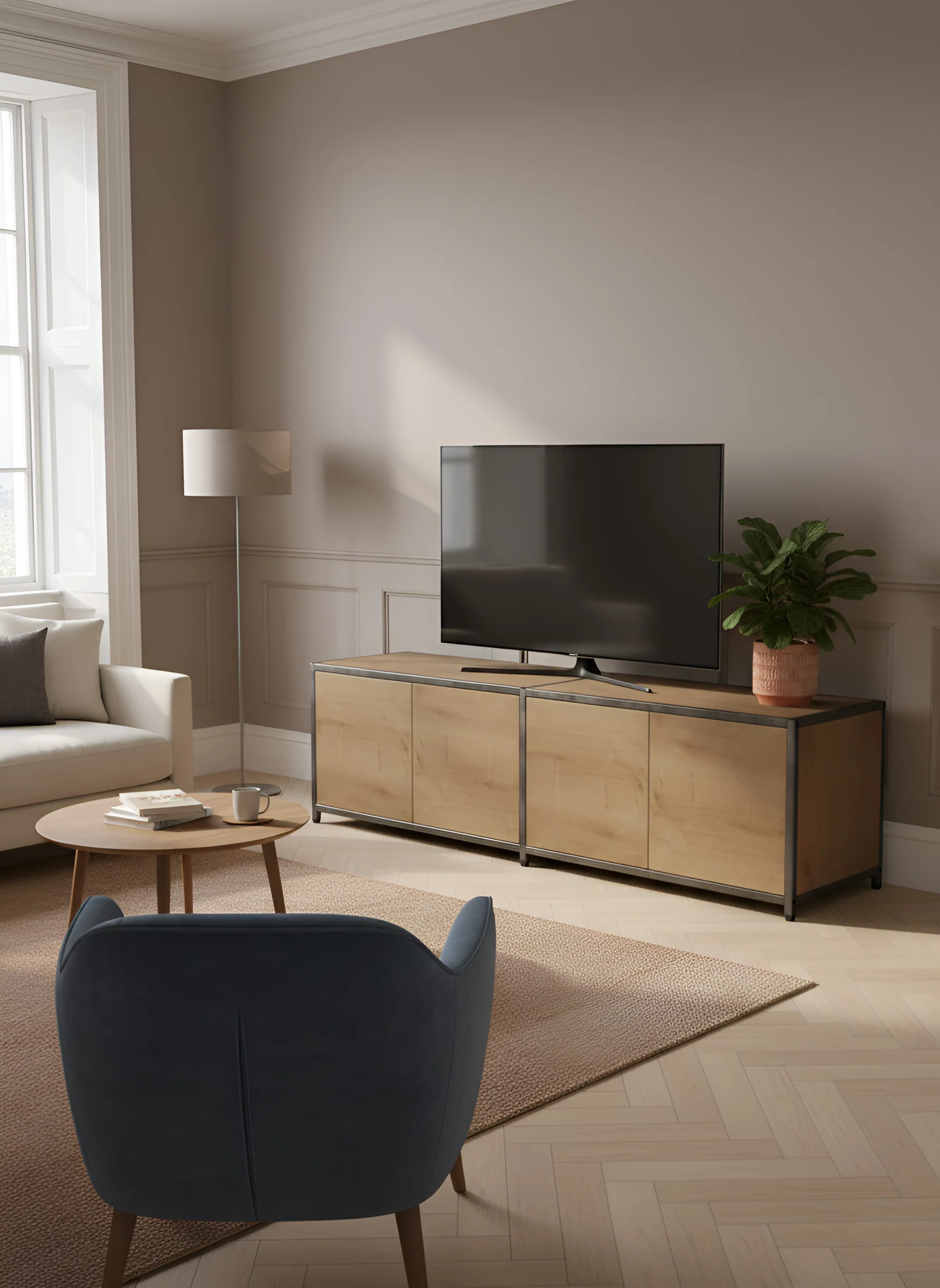 We want you to be able to create a space that's unique to you with furniture that's designed specifically for your needs. The Raskelf TV Stand is no exception, and is built using our proprietary modular metal framework that can be grown or altered whenever you want. Get started by choosing a frame and panel colour combination above, or build your own adaptation of the Raskelf in our 3D configurator.