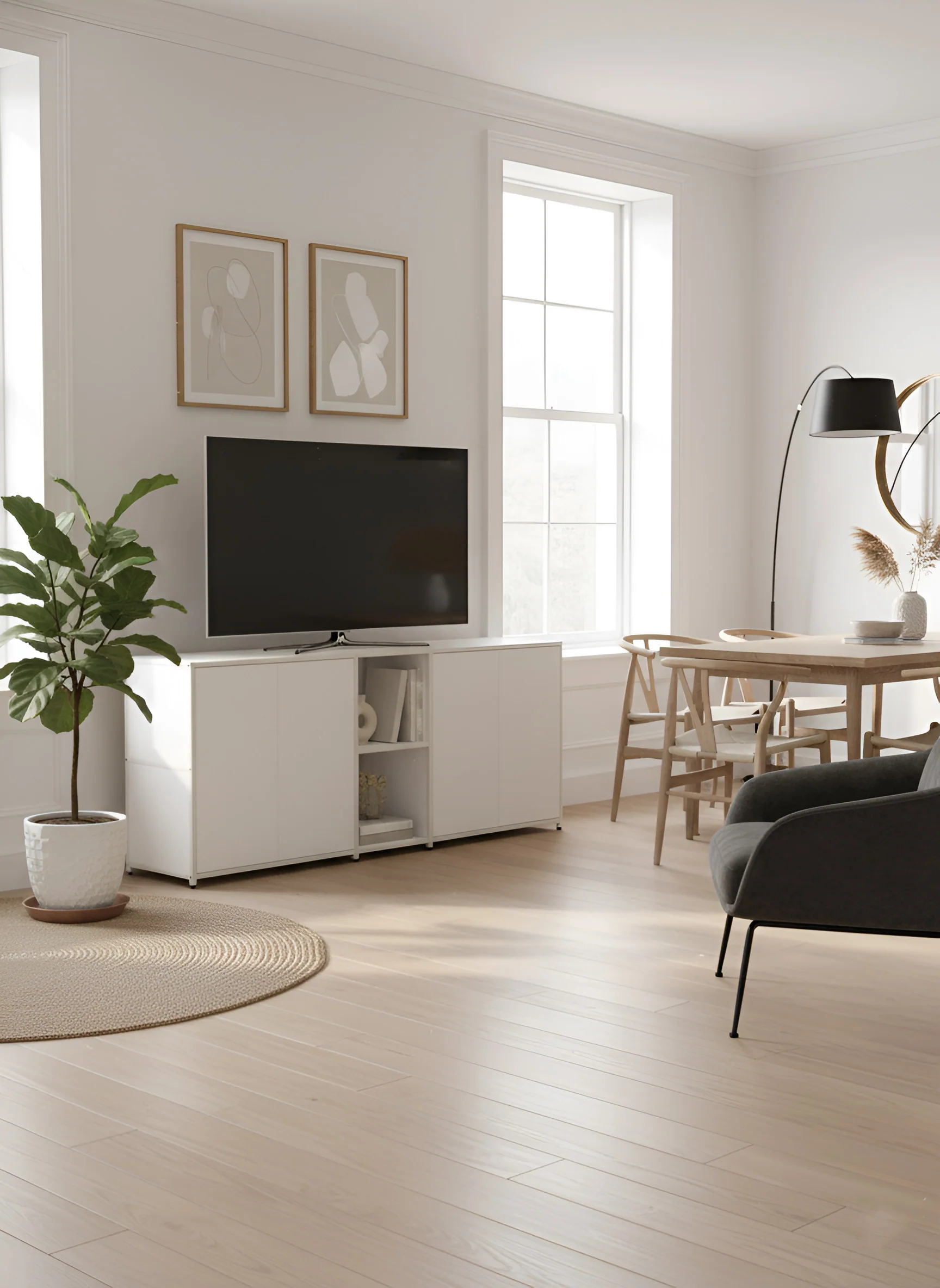 In the centre of the Foston TV Stand, two open shelves give you the options of creating a central media device hub, a unique decorative focal point, or anything else you can think of. To the sides, there are two tall double cupboards, each equipped with adjustable shelves to accommodate any of the things you're looking to store in them. They're a great place to store media or keep clutter to a minimum, but they're also perfectly suited for electronic devices such as games consoles, Blu-ray players and more thanks to the cable access in the rear panels.