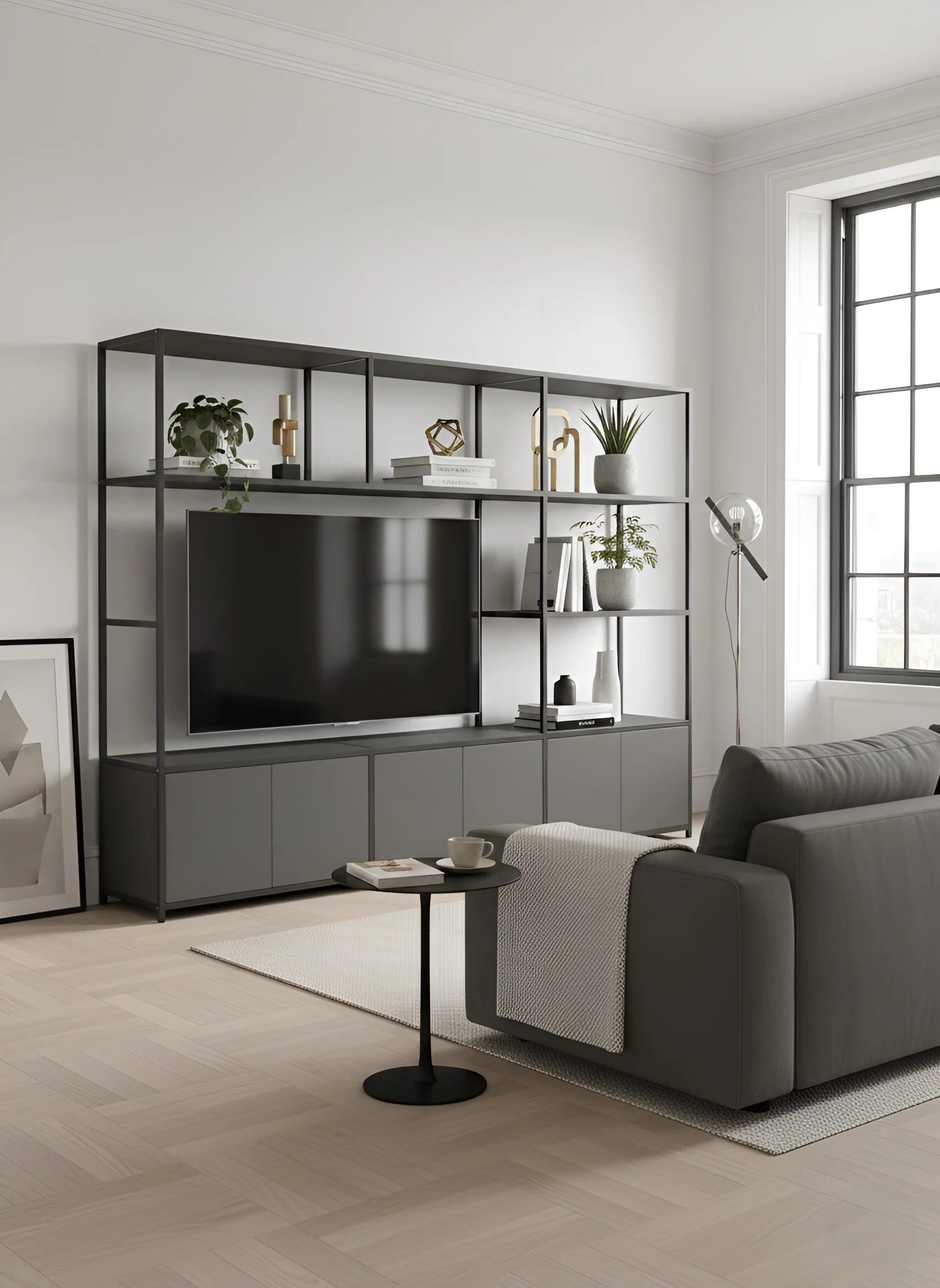 Asymmetrical designs are the perfect way to create an expressive interior. The Faceby Modular TV Unit gives you that instant sense of style and sophistication, all whilst providing an astounding amount of storage space.