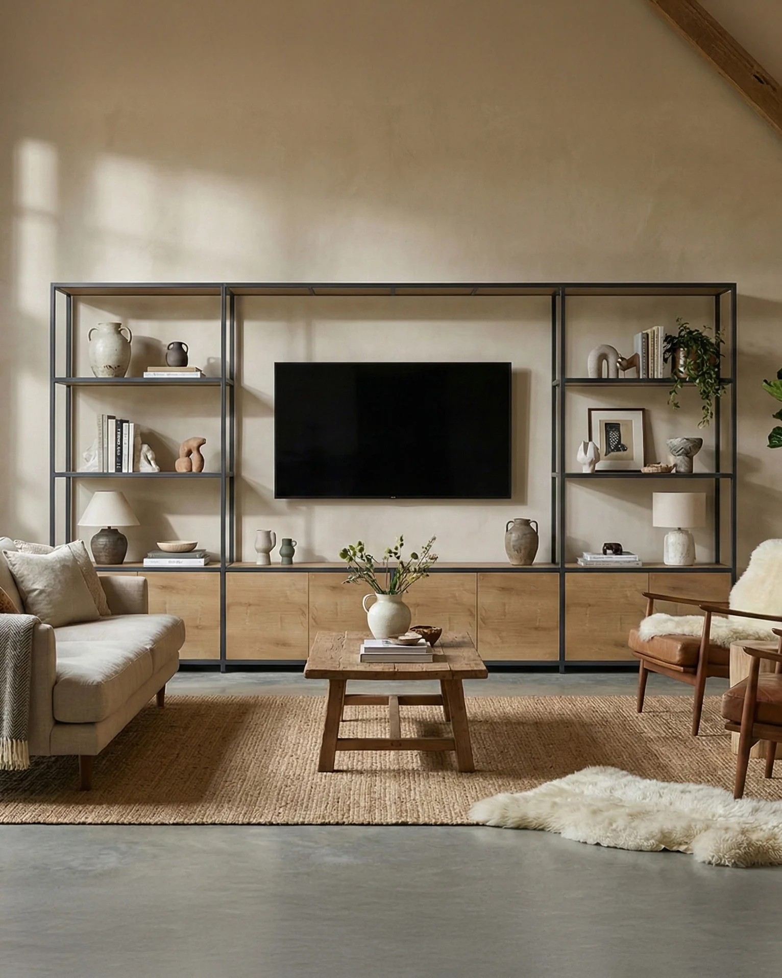 Create the perfect home media hub with the Catton Modular TV Unit. With its high-level bridged design and spacious central TV shelf, the Catton can accommodate televisions up to 65" in size. But this unit isn't just for your TV. Three wide rectangular shelves on each side of the TV opening provide you with plenty of space to store and display absolutely anything you want to. You can also use the top of the bridge as a wide shelf for larger items, or for adding elements of unique decoration to your stand.